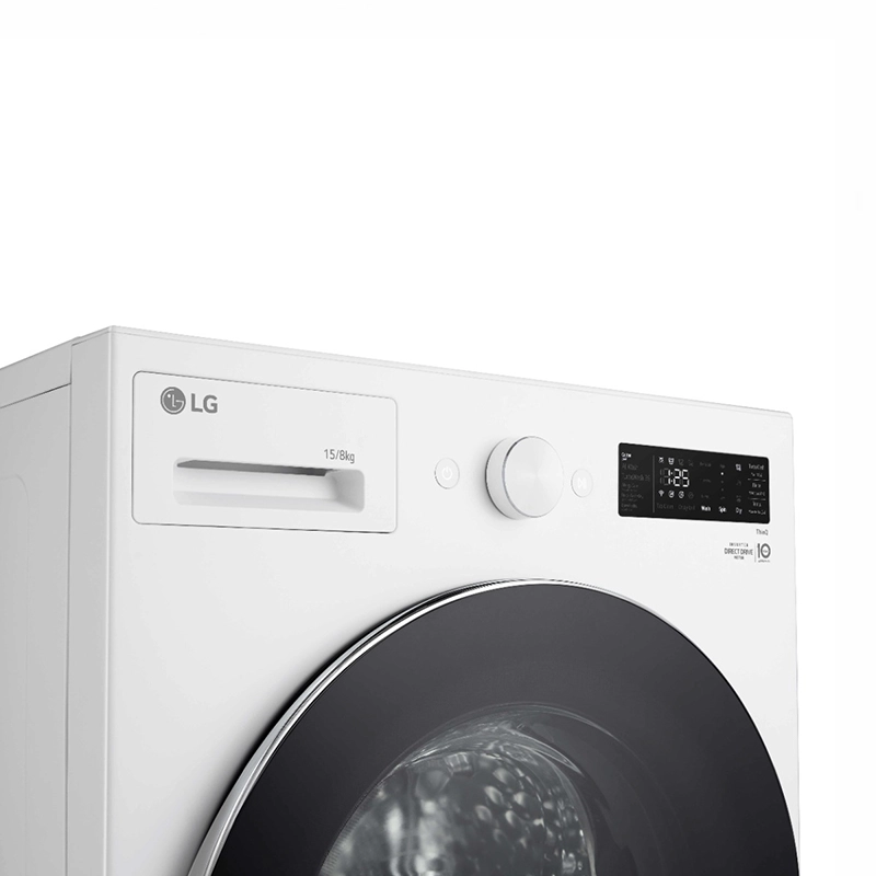 غسالة ونشافة إل جي أمامية 15 كغ غسيل / 8 كغ تنشيف أبيض – AI DD + TurboWash 360°