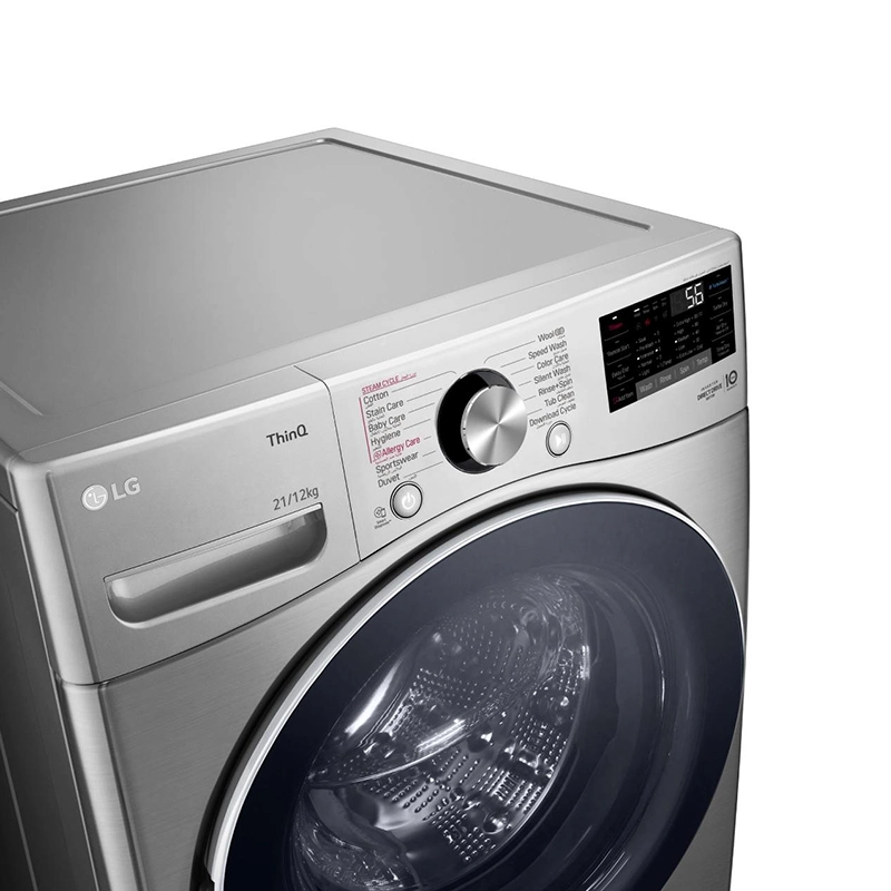 ✨ غسالة ونشافة إل جي 21/12 كغ، AI DD، Steam+، TurboWash، واي فاي، إضافة ملابس أثناء الغسيل، وأداء هادئ وقوي.