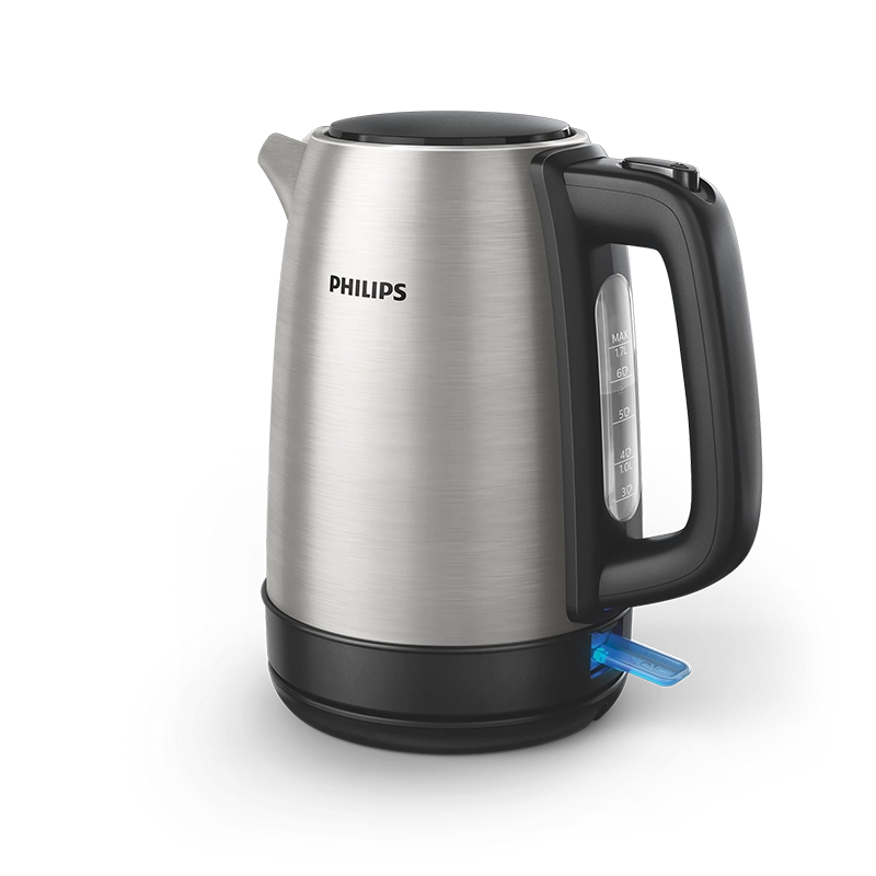 غلاية مياه أنيقة من Philips مصنوعة من ستانلستيل عالي الجودة يضيف لمسة فاخرة لمطبخك، مع أداء قوي بقدرة 2200 واط لغليان سريع وفعّال.