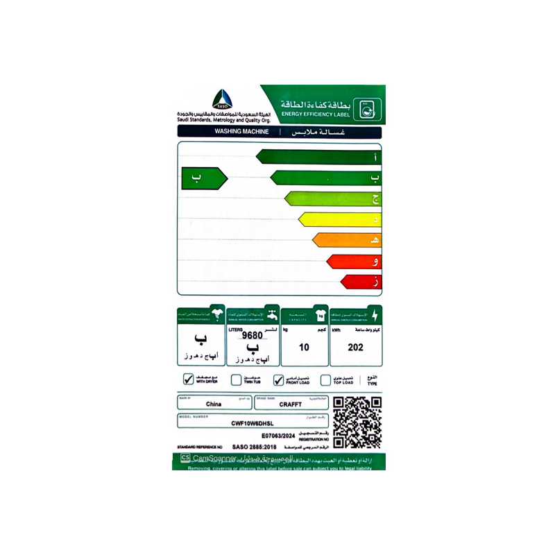 كرافت غساله اوتوماتيك فتحة امامية – 10 كيلو غسيل 6- كيلو تجفيف- لون سلفر- CWF10W6DHSL
