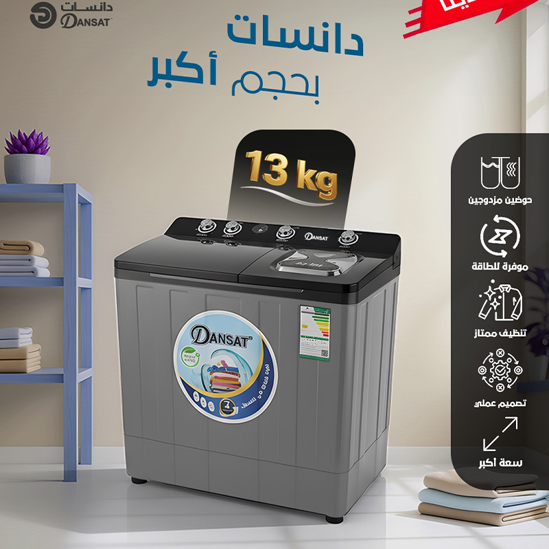 كن أول من يقيم “غسالة دانسات حوضين تعبئة علوية سعة 13 كيلو – لون رمادي – DAN14TW” إلغاء الرد