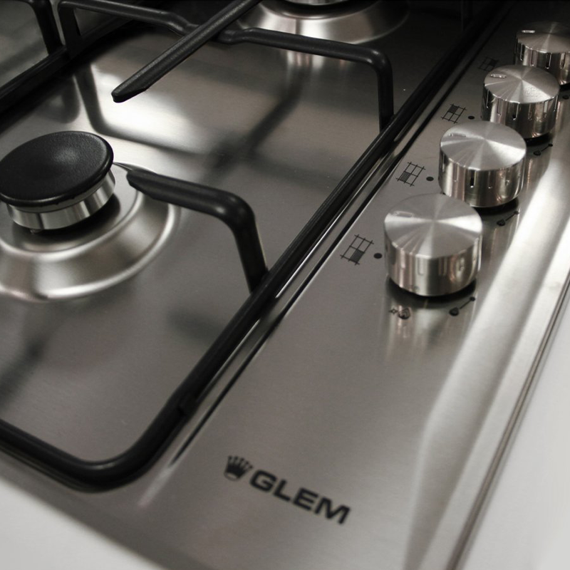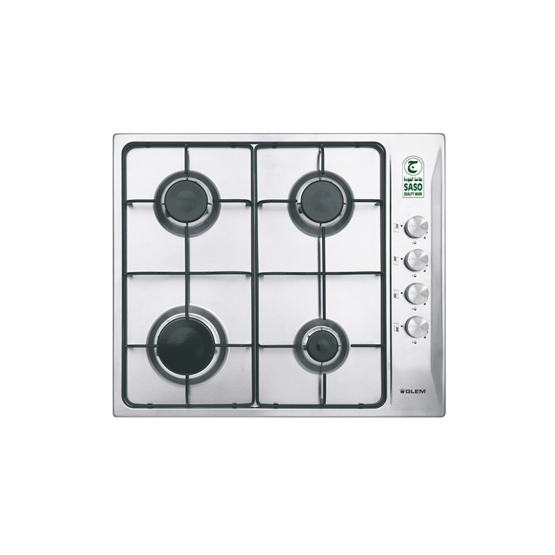 Glem Gas Built in Gas Hob , 4 Burner, 60 cm, Electronic Ignition, Steel – GTL64IX