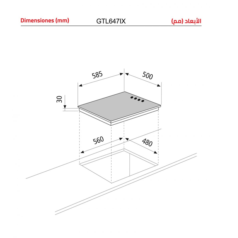 جليم غاز سطح غاز بلت ان 60 سم 3عيون غاز + 1 كهرباء – GTL647IX