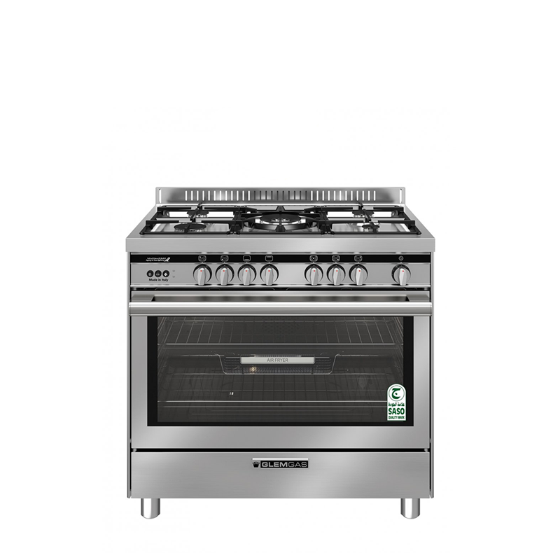 Glem Gas Gas Oven 60 x 100 cm, 5 Gas Burners, Full Safety – Multi-Function, Fan, Air Fryer, Steel, Italian, Steel, ST167GIFSMFAF