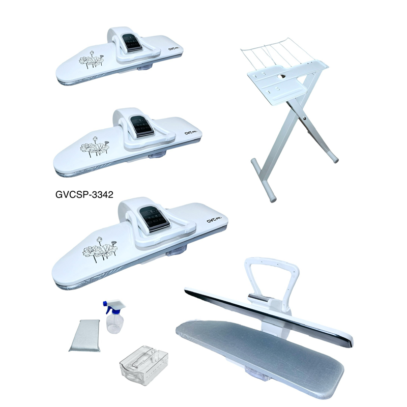 كاوية كبس جي في سي برو 32 بوصة بقوة 1600 وات مع لوحة تحكم إلكترونية دقيقة، نتائج كي احترافية بسرعة وسهولة، مع قاعدة متعددة المقاسات.