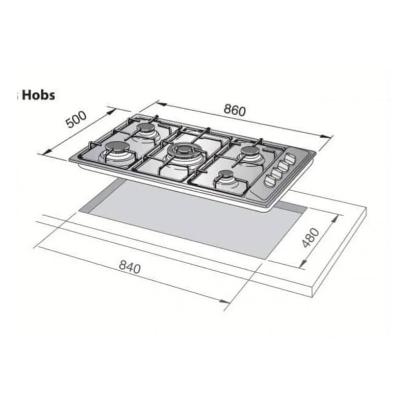 Kitchen Line Built-in Gas Hob – 90cm, 5 Burners, Heavy-Duty Design | Model KLQ905VTGV