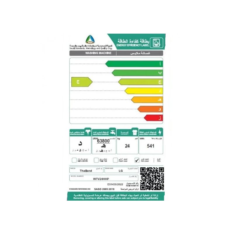ال جي -غسالة اتوماتيك علوية , 24 كيلو , التشخيص الذكي ,اسود -WTV24HHP