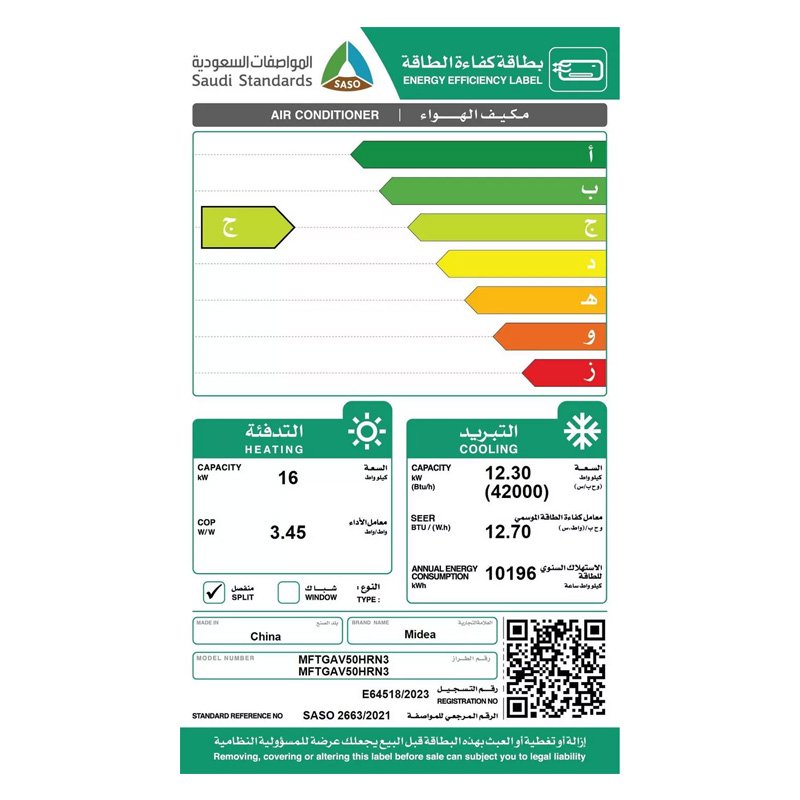 ميديا مكيف دولابي 50 حار/ بارد، انفرتر، قوة التبريد الفعلي 42000 وحدة، – MFTGAV50HRN3