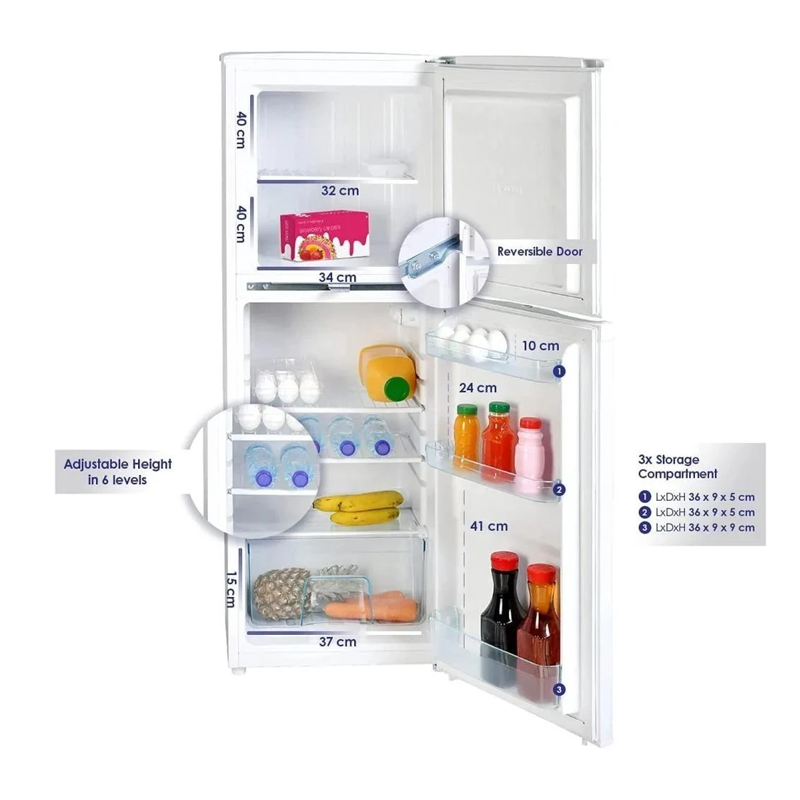 Keep your food fresh with the Super General Double Door Refrigerator 4.9 Cu.Ft (138L) featuring a sleek silver design. This refrigerator offers efficient cooling performance, perfect for daily use in homes, offices, small apartments, and guest rooms.