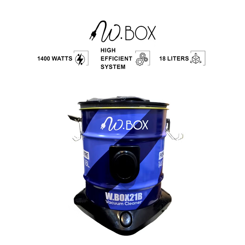 مكنسة برميل دبليو بوكس سعة 18 لتر، 1400 واط، أسود وأزرق – RM-DVC18A