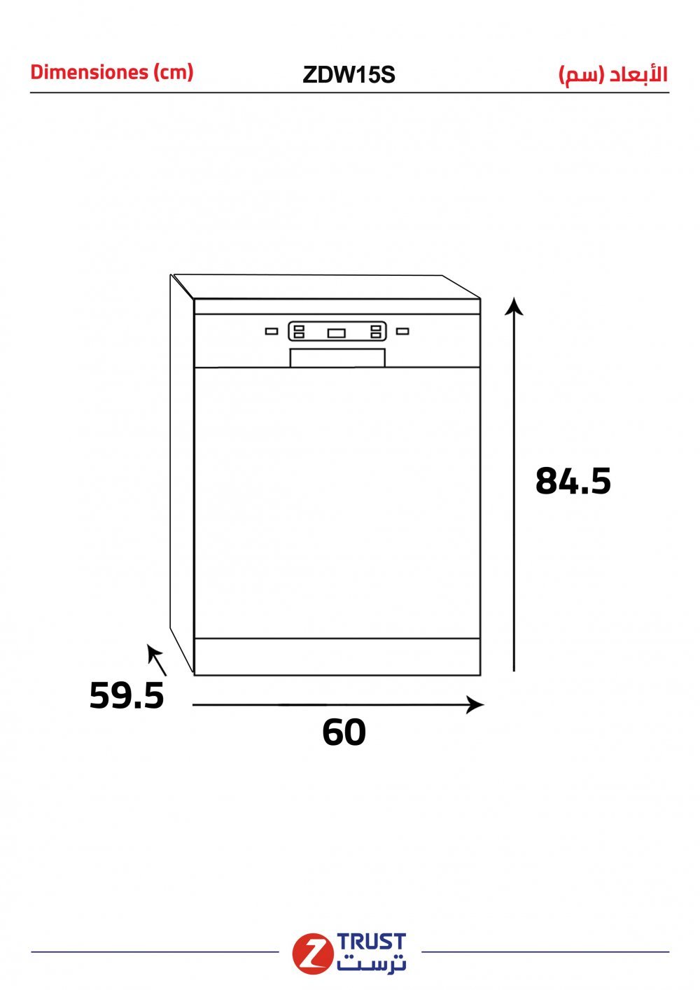 ز.ترست غسالة صحون ، 7برامج ، شاشة عرض ، 15طقم ـ أستيل-ZDW15S