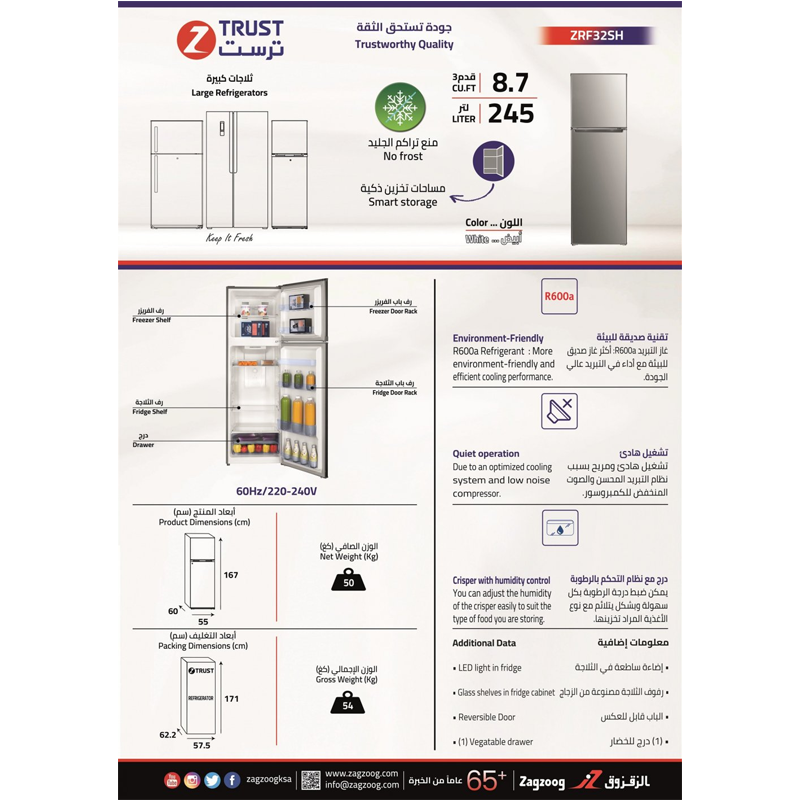 ثلاجة ز.ترست 8.7 قدم³ – 245 لتر – ZRF32SH